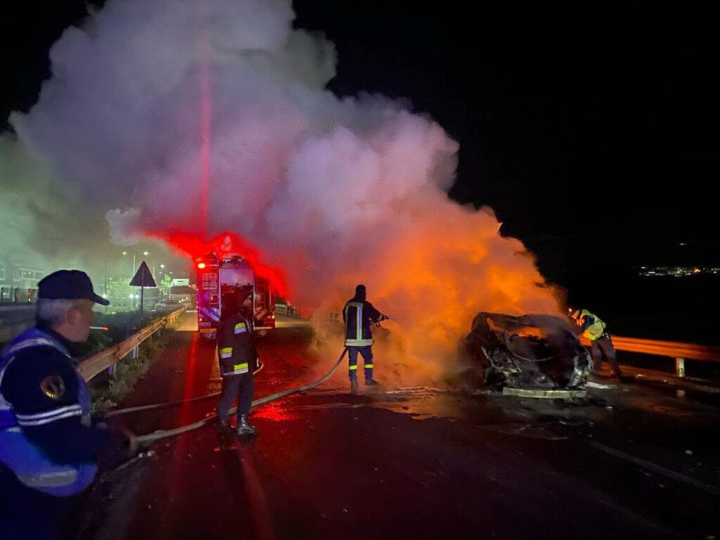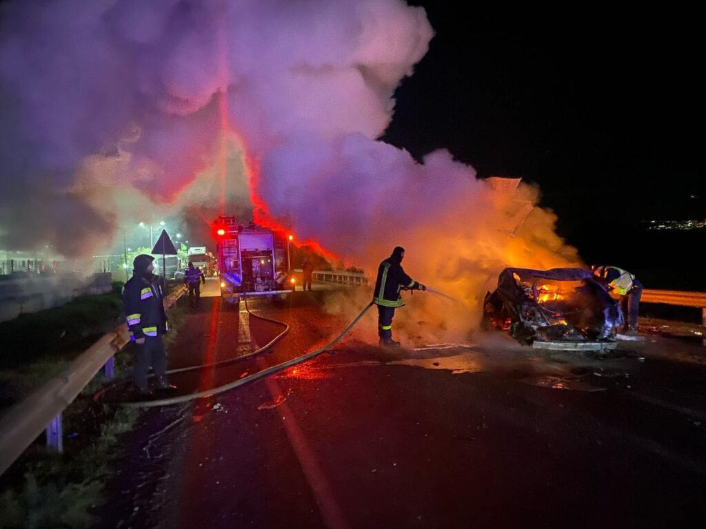 Si pasojë e përplasjes, makina është përfshirë nga flakët dhe kanë humbur jetën drejtuesi i ‘Benz’-it 25-vjeçari me iniciale E. L., dhe 3 pasagjerët në mjetin e tij, të rinjtë me iniciale E. L., 20 vjeç, E. K., 24 vjeç dhe A. L., 22 vjeç.