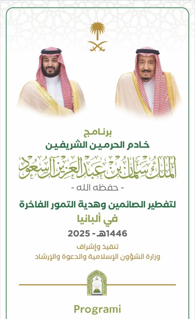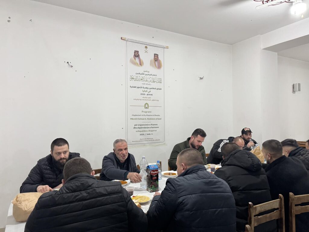 Iftari i sotëm u mundësua nga projekti “Sofra e Iftarit – 2025” i zbatuar nga Komuniteti Mysliman i Shqipërisë me sponsorizim të drejpërdrejtë të Shërbëtorit të Dy Xhamive të Shenjta, Selman bin Abdulaziz – Mbreti i Mbretërisë së Arabisë Saudite, dhe Princit të tij të Kurorës, Muhamed bin Selman, nëpërmjet Ministrisë së Çështjeve Fetare në Arabinë Saudite.