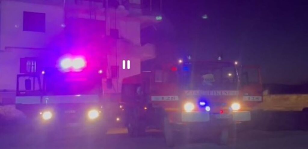 Near the SMT neighborhood in Korçë, a fire has engulfed the terrace of a four-story building. The flames have affected the interior part of the terrace on the fourth floor, causing alarm in the area. Three fire trucks arrived at the scene immediately and are working to fully extinguish the fire.