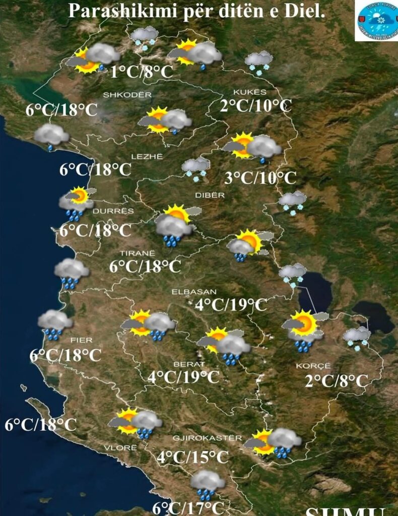In the Alps and the northeastern-southeastern mountainous areas, at an altitude of over 800-1000 meters, snowfall with low intensity is expected on Sunday afternoon.