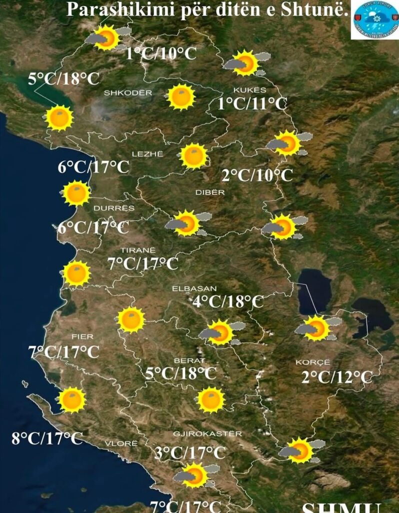 On Saturday, our country will experience stable weather with predominantly clear skies; however, occasional alternations with medium and high clouds will be present, mainly in the mountainous areas.