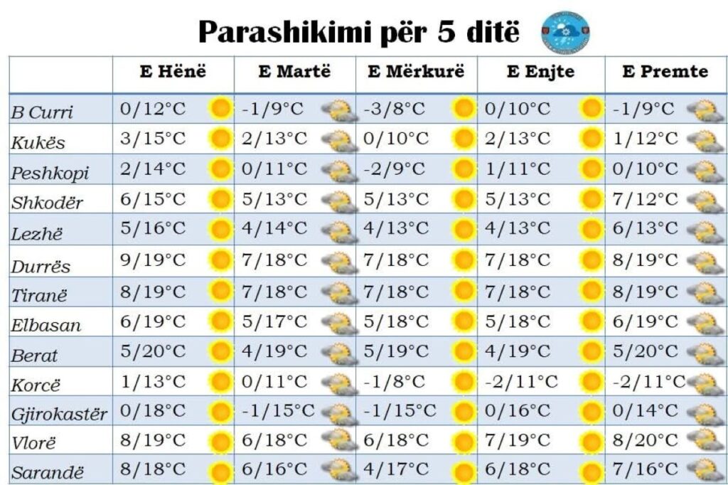 Here’s the forecast for Monday to Friday, presented in the table below: